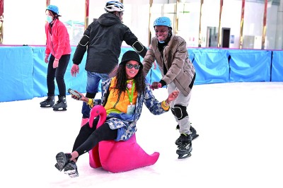 10月21日,非洲青年们走进八达岭国际会展中心,畅玩冰雪项目,感受冰雪魅力。新华社发