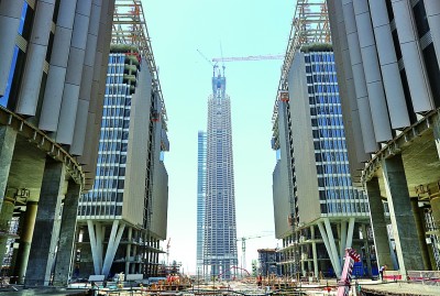 6月17日,由中国企业参与建设的埃及新首都中央商务区标志塔(中)主体建筑封顶。新华社发
