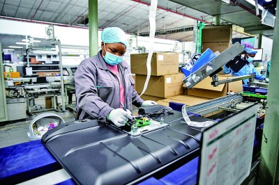 6月1日,当地员工在南非开普敦海信南非工业园的电视机生产线上工作。新华社发