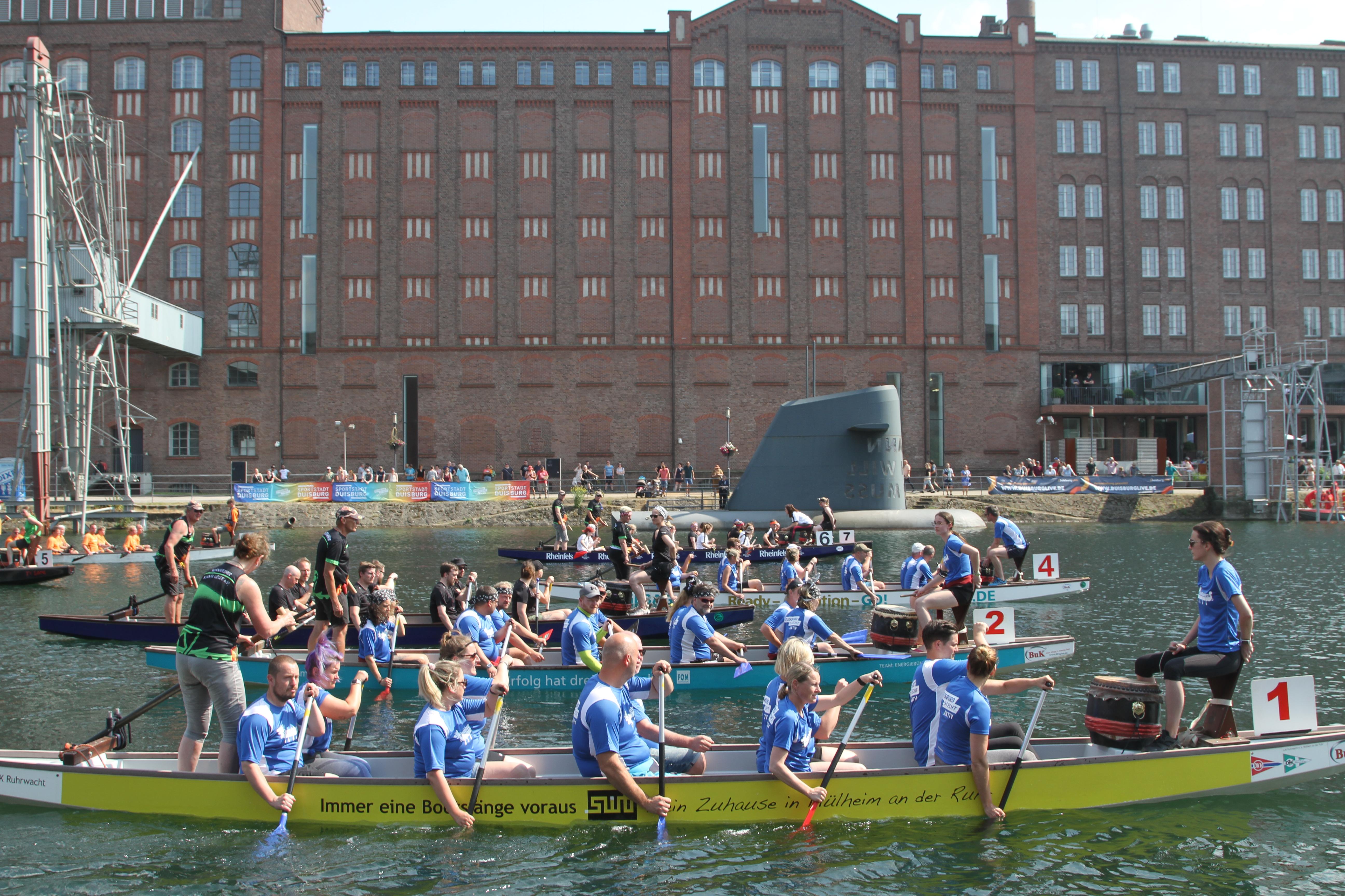 6月10日,人们在德国杜伊斯堡参加趣味龙舟赛。新华社记者 单玮怡 摄