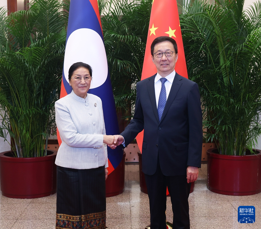 新华社北京10月14日电 10月14日,国家副主席韩正在北京会见来华出席全球妇女峰会的老挝国家副主席巴妮。