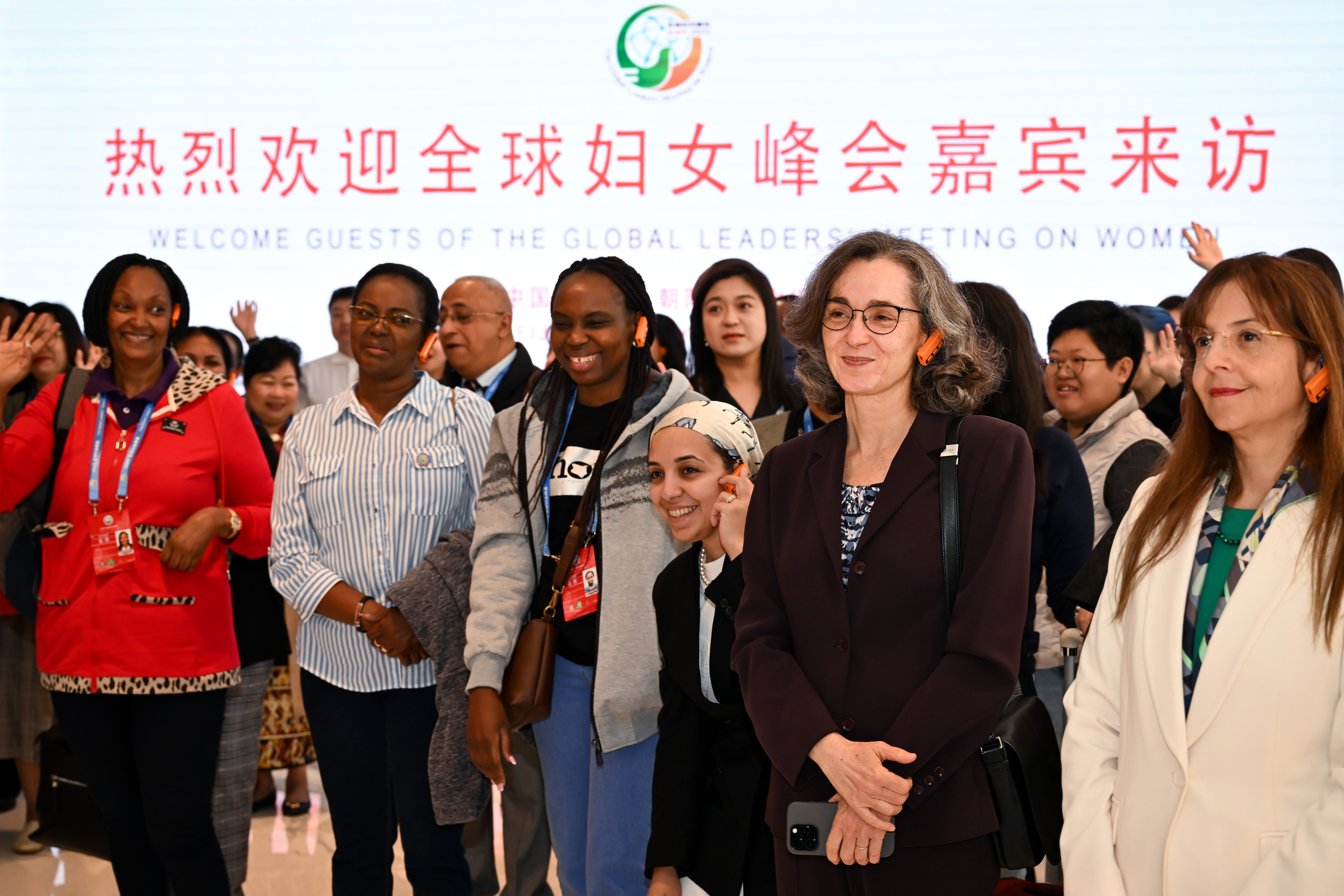 10月14日,全球妇女峰会参会嘉宾在北京市秀水街大厦参访。新华社记者 邹竞一 摄