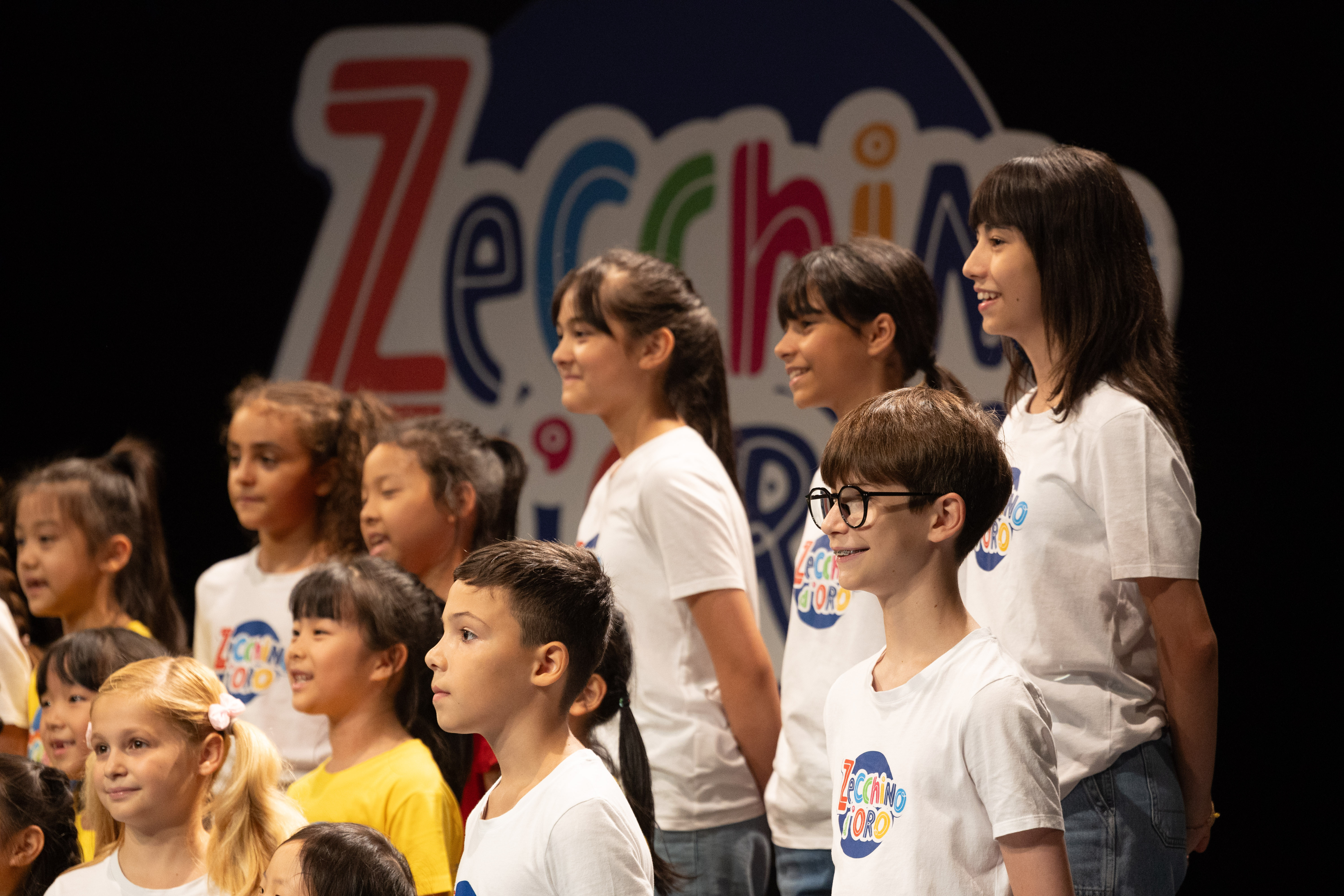 7月18日,在意大利博洛尼亚,安东尼亚诺小合唱团与绣球花小合唱团一起表演。新华社记者 李京 摄