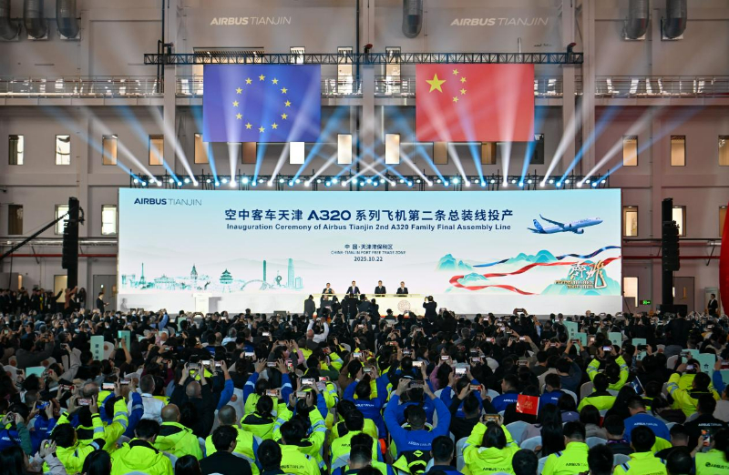 2025年10月22日拍摄的空客天津A320系列飞机第二条总装线投产仪式现场。新华社记者 孙凡越 摄