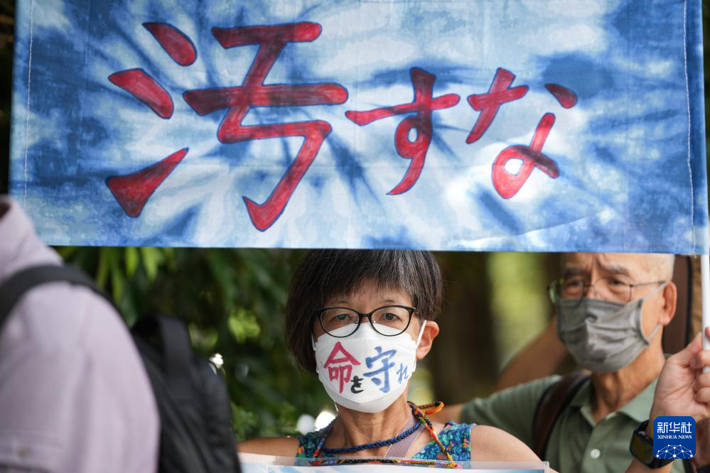 2023年8月18日,市民在日本东京首相官邸前集会,抗议福岛核污染水排海计划。新华社记者 张笑宇 摄