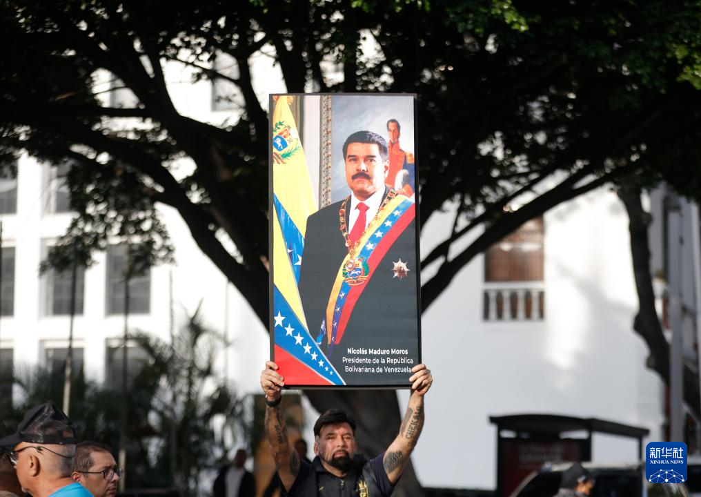 1月3日,民众在委内瑞拉首都加拉加斯的总统府附近抗议。新华社发