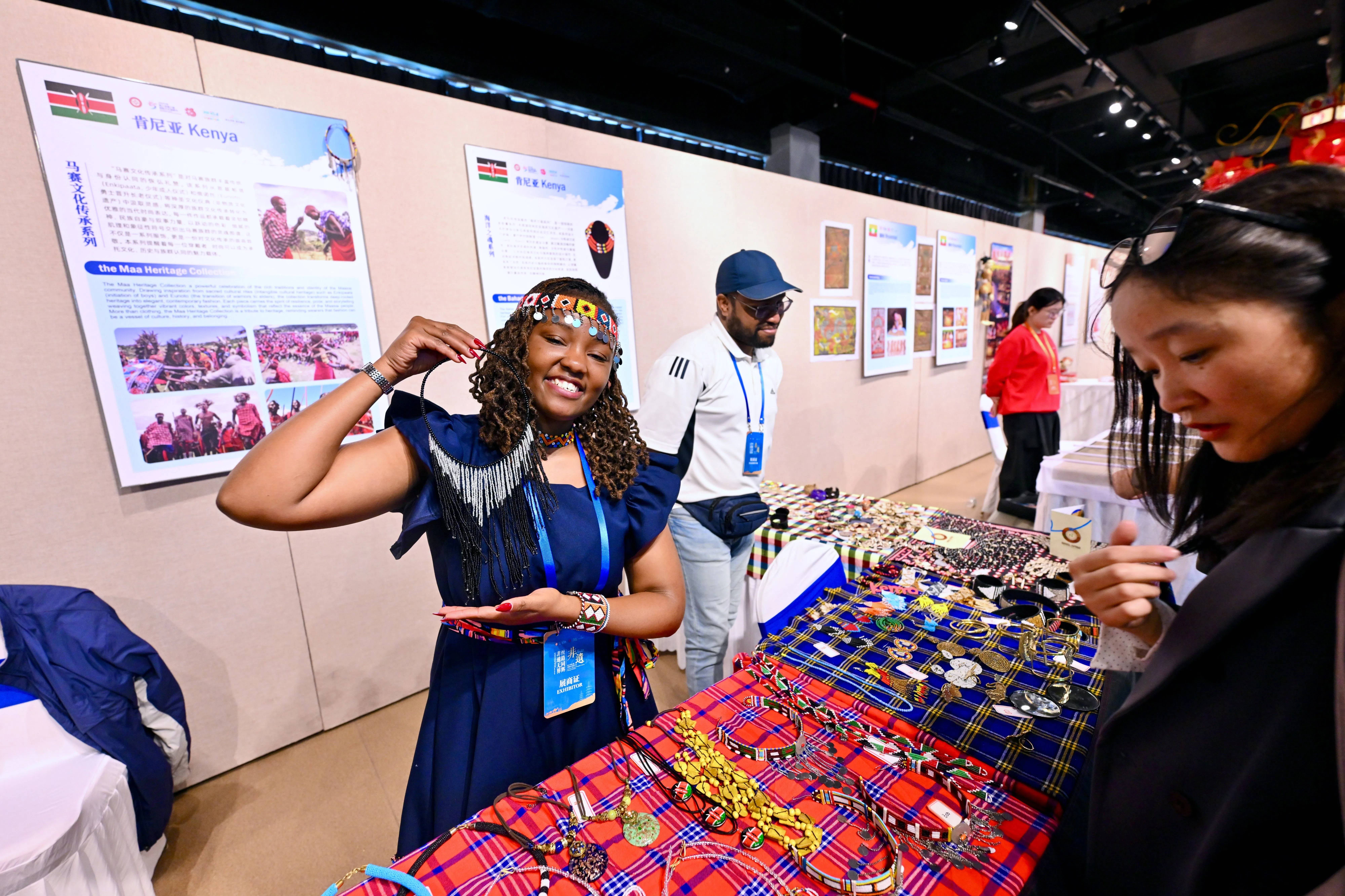 2025年12月12日,肯尼亚参展代表在海上丝绸之路非物质文化遗产展演活动上展示传统饰品。新华社记者 姜克红 摄