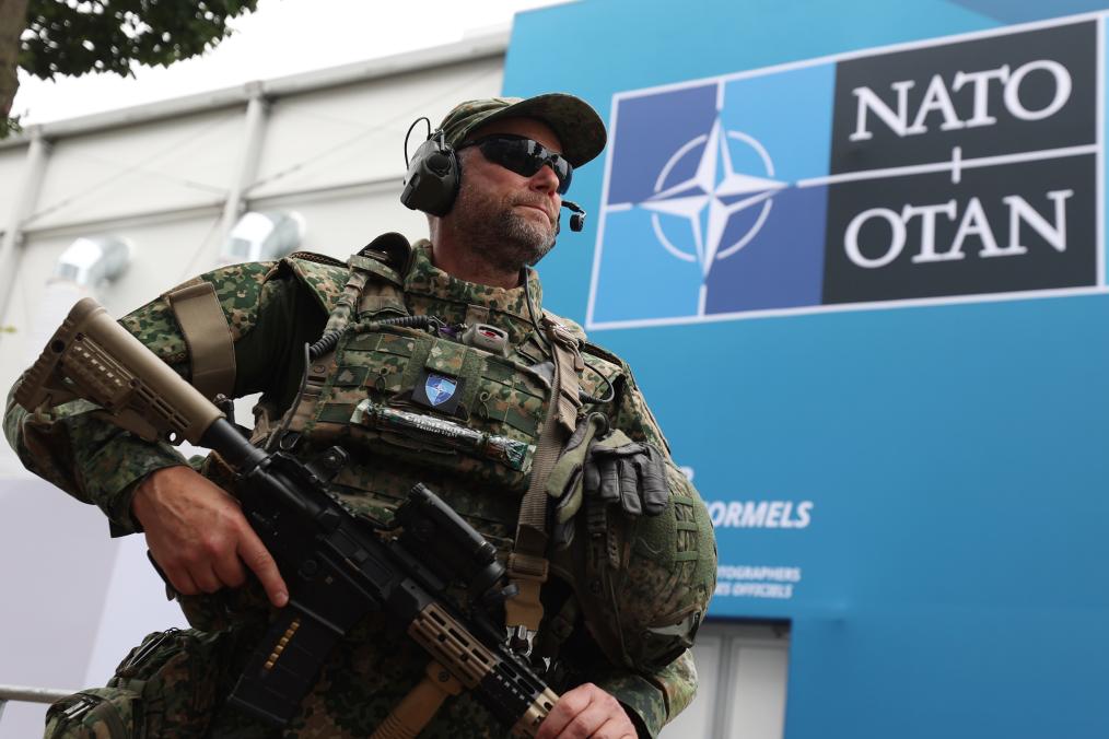 2025年6月24日,在荷兰海牙,安保人员在北约峰会现场警戒。新华社记者 赵丁喆 摄