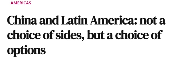 文章称,中国在拉丁美洲的存在增加了该地区国家的战略选择。主权并非孤立,主权是选择的能力,是为基础设施建设融资的能力,是谈判贸易条款的能力,是发展工业能力的能力。主权也意味着在保障措施到位的情况下采用新技术,以及无需许可即可拓展合作伙伴关系的能力。从这个意义上讲,如果拉丁美洲能够以成熟的战略眼光与中国交往,这种关系就不必充满争议,这不是站队选择,而是选择方案。