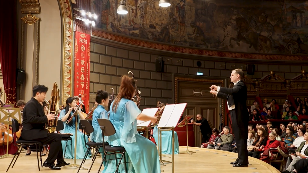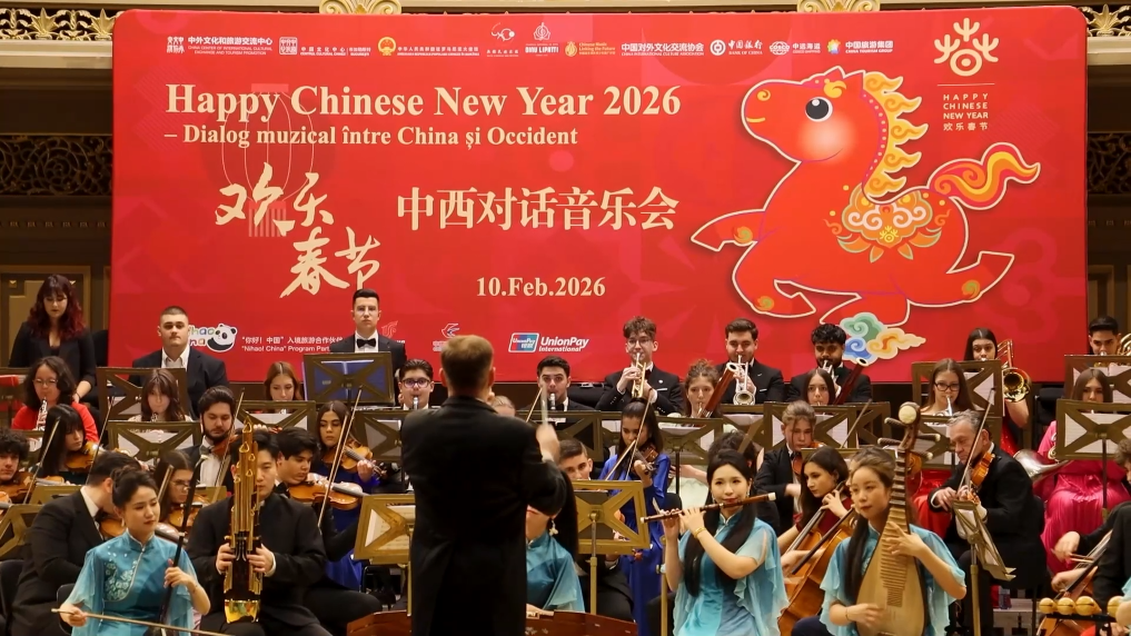 当地时间10日晚,罗马尼亚首都布加勒斯特雅典娜音乐厅座无虚席,约800名观众欣赏了由江苏无锡民族乐团与罗马尼亚迪努·利帕蒂国家艺术学院交响乐团联袂呈现的“欢乐春节”音乐会,在中西合璧的乐声中感受江南春韵。