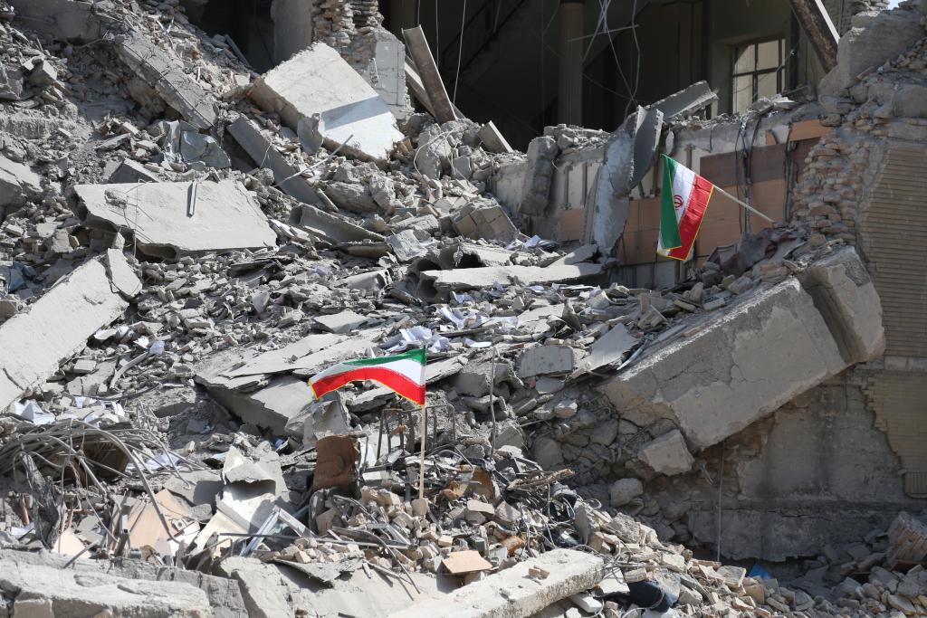 这是3月4日在伊朗德黑兰革命广场附近拍摄的一处损毁的建筑。新华社记者 沙达提 摄