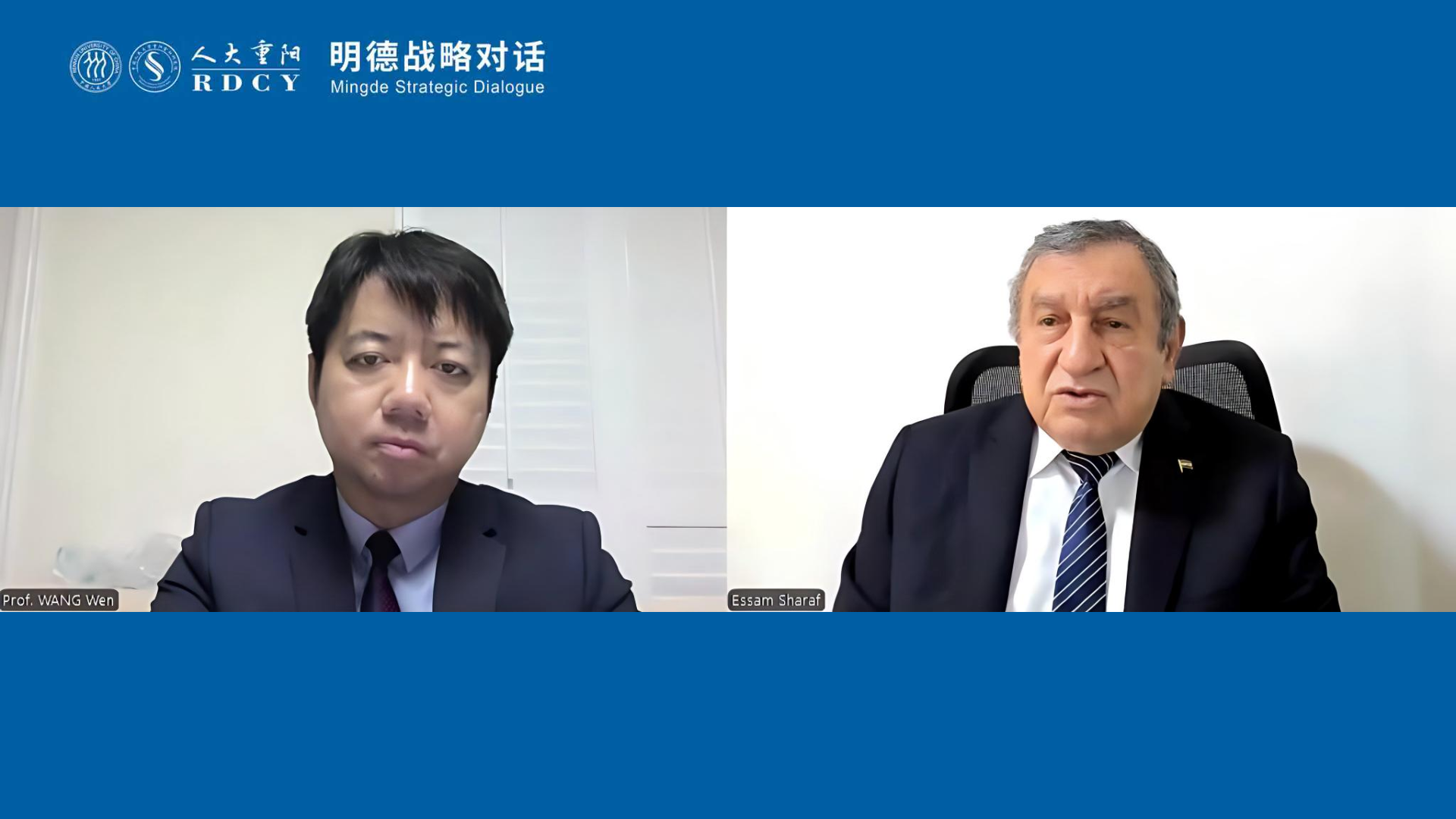 4月8日,埃及前总理伊萨姆•沙拉夫做客中国人民大学重阳金融研究院(人大重阳)2026年度“明德战略对话”,与人大重阳院长、全球领导力学院院长王文围绕“全球南方视角下的现代化路径”主题展开深度对话。沙拉夫指出,当前中东乱局根源在于缺乏公正的全球治理,全球南方国家应主动作为,积极争取自身权利,结束长期被西方主导的局面。全球南方国家还应借鉴中国发展经验,探索符合自身国情的发展道路。