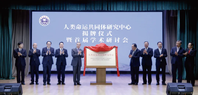 2025年1月2日,人类命运共同体研究中心揭牌仪式暨首届学术研讨会在外交学院举行,中共中央政治局委员、外交部长王毅为研究中心揭牌并致辞。(外交学院图片)